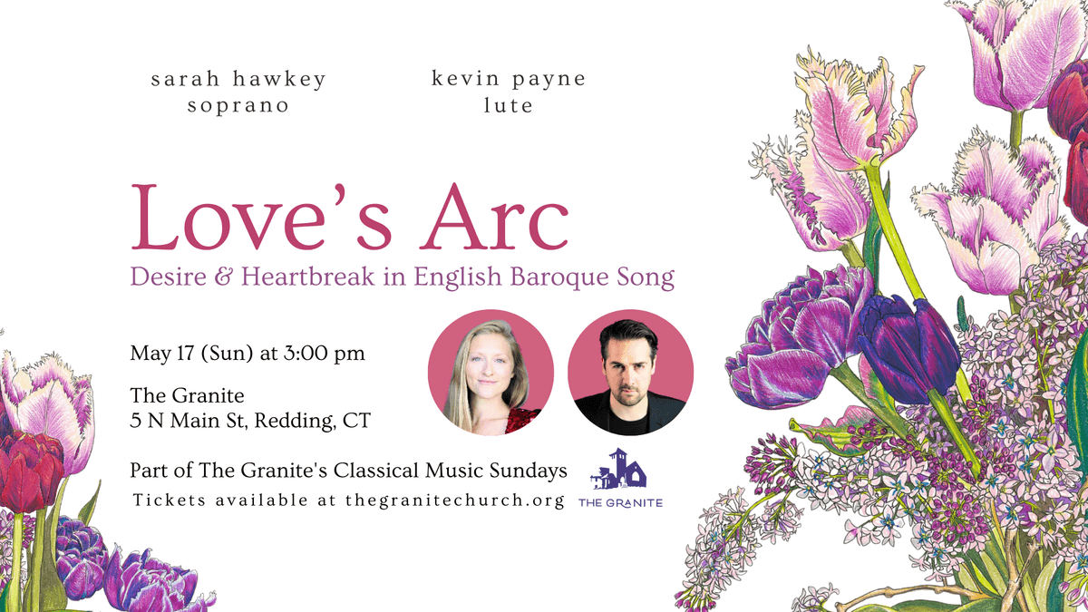 Soprano Sarah Hawkey and lutenist Kevin Payne present Love’s Arc: Desire and Heartbreak in English Baroque Song, an intimate afternoon of music by beloved English Baroque composers Henry Purcell, John Dowland, and their contemporaries.